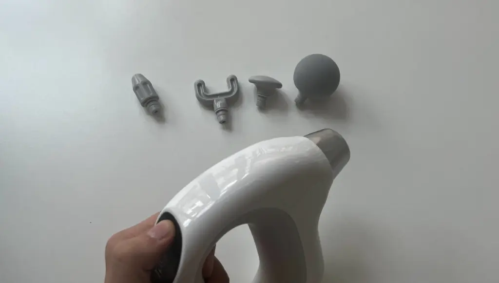 The Qinux MassePil massage gun is a versatile device that comes with four interchangeable heads. Each of these heads has been designed with great attention to detail to target specific areas of the body. This means you can customize your massage to your needs, whether you need to relieve tension in your back, legs, shoulders, or any other part of the body.