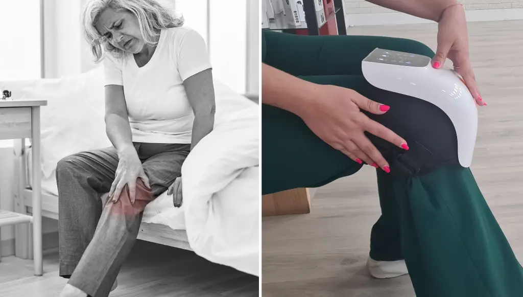 Infrared knee massager that relieves pain and improves recovery from injuries.