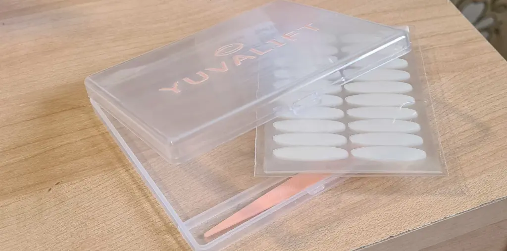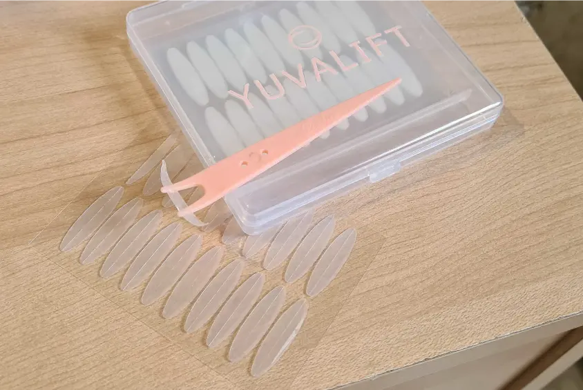 The day I received my package at the beauty center, the excitement was palpable. I was eager to try the Uqalo Yuvalift and see if everything I had heard about them was true. What happened next was simply amazing! Upon removing one of the strips from its packaging, I was surprised by how ultra-thin and transparent they were. The adhesive worked wonderfully and, to my relief, it didn't cause any irritation on my sensitive skin.
