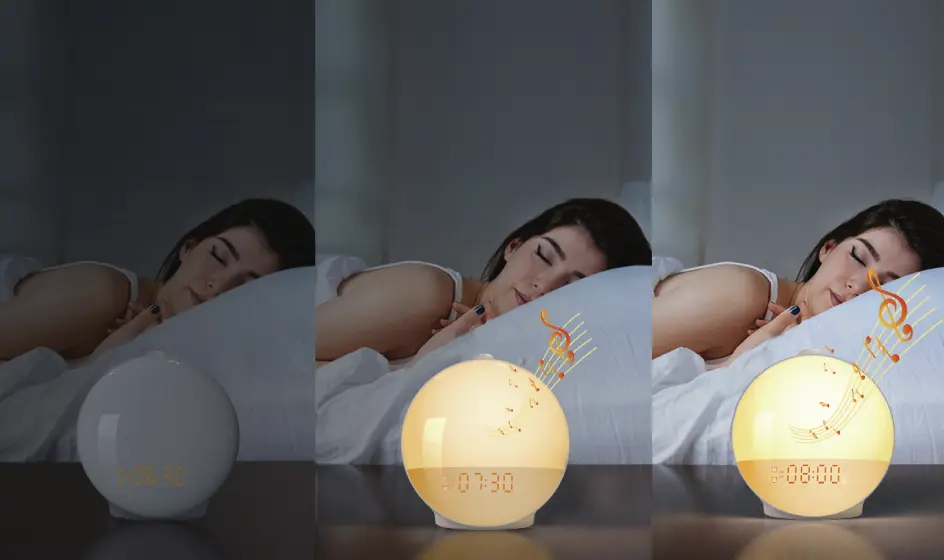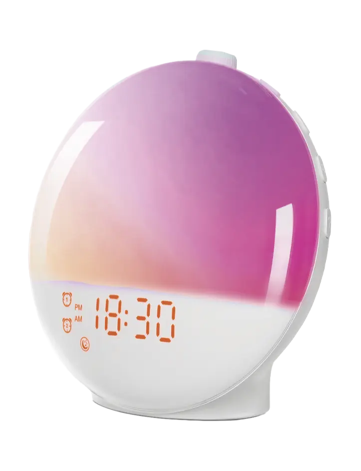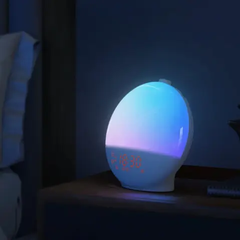 It features 20 levels of brightness and 7 colors to create the perfect ambiance. Plus, you can choose from 7 natural sounds or radio to wake up to, no more blaring alarms!