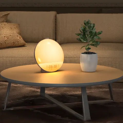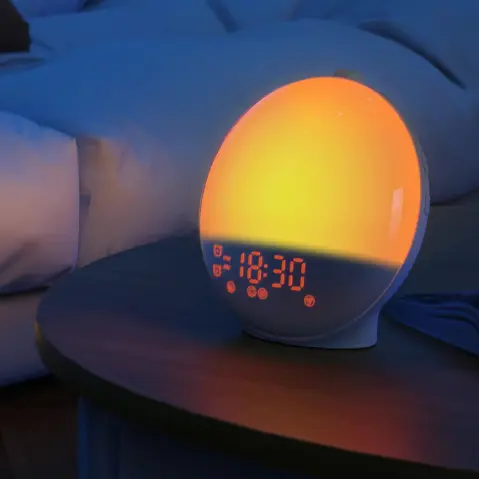 Qinux Wakersun is not just any alarm clock, as it simulates the sunrise. As the time to wake up approaches, a soft light begins to glow, gradually increasing in intensity, helping you to wake up naturally and without any sudden jolts.