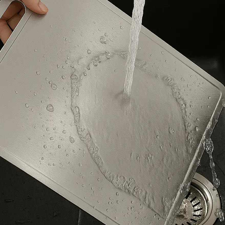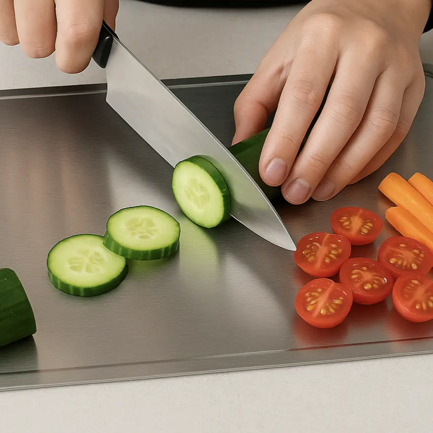 Unlike tables made of other materials, its surface doesn't retain liquids or odors, and it's extremely easy to clean, making it a must-have tool in any kitchen. It naturally repels bacteria and microorganisms.