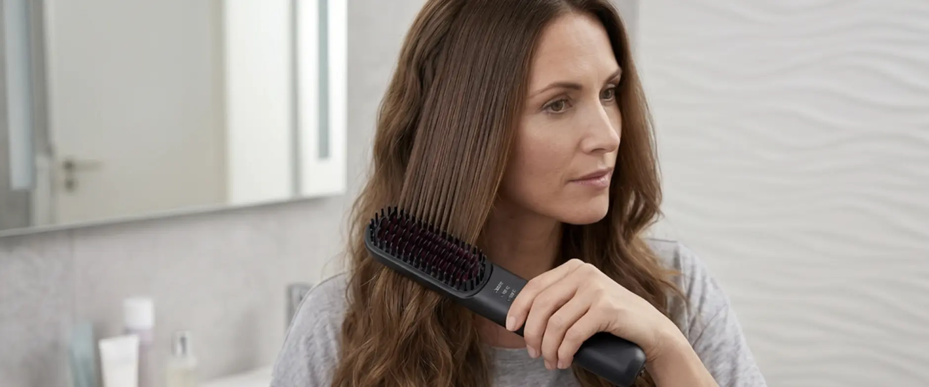 This straightening brush has changed the way I get ready. Now, I don't have to spend hours in front of the mirror to achieve smooth, straight, and shiny hair. At first, I found it hard to believe that a straightening brush could be so efficient, but it's amazing how fast it works!