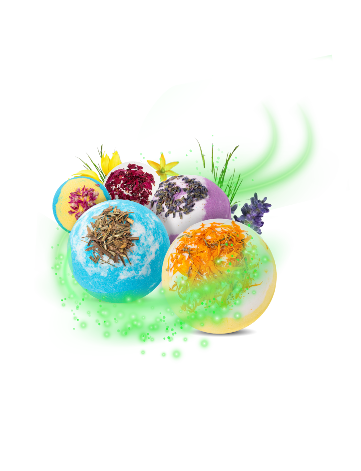 They're made with natural ingredients like essential oils, mineral salts, and botanical extracts, which release aromatic bubbles and therapeutic benefits when they hit the water.