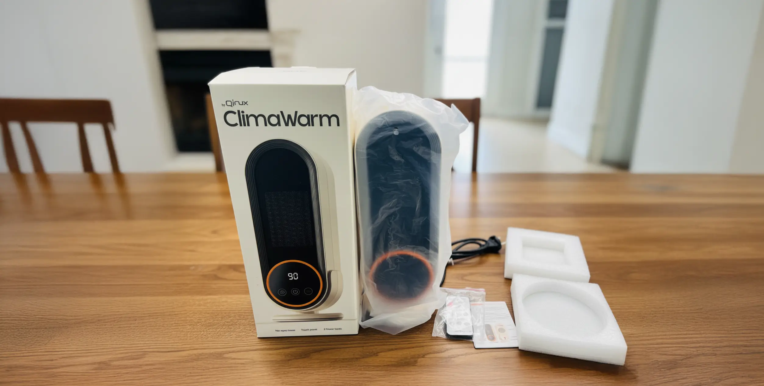 When I got the package for the Qinux ClimaWarm portable heater, I had a good feeling right away: a nicely presented box, clear instructions, and a modern, compact design. Taking it out, I was surprised by how light it is and how well-built it feels to the touch. I plugged it in, and within seconds, it was giving off a really pleasant warmth.