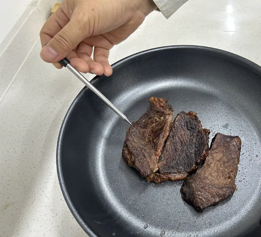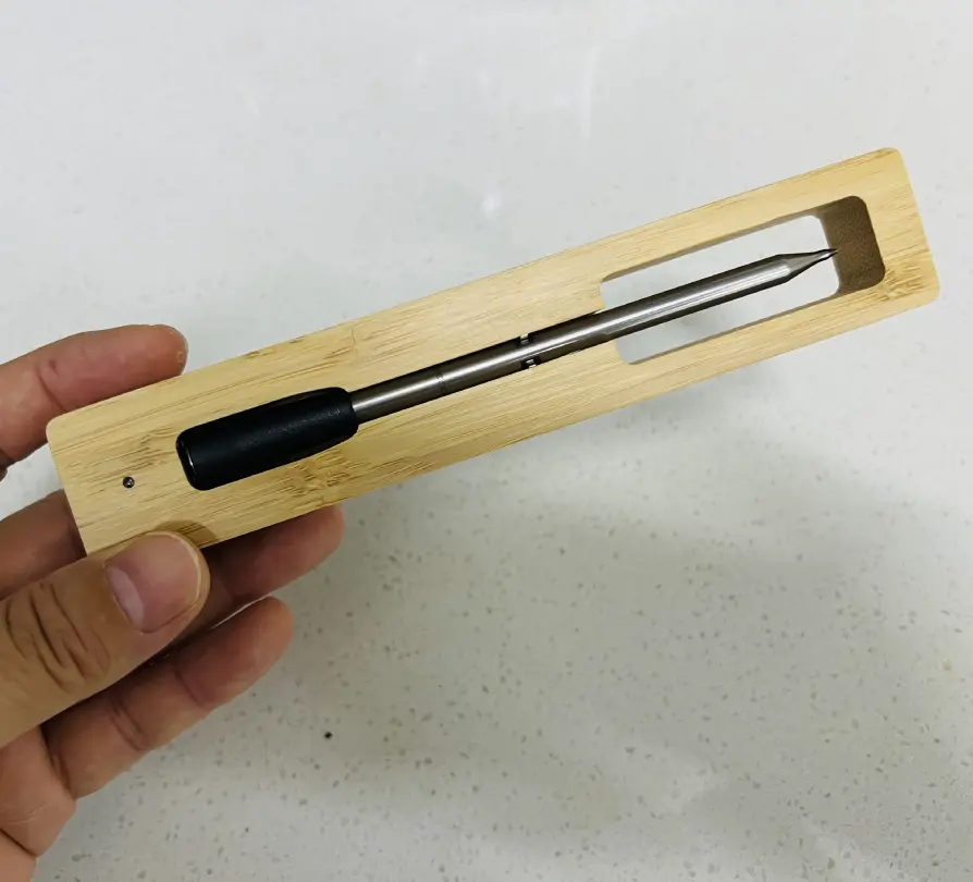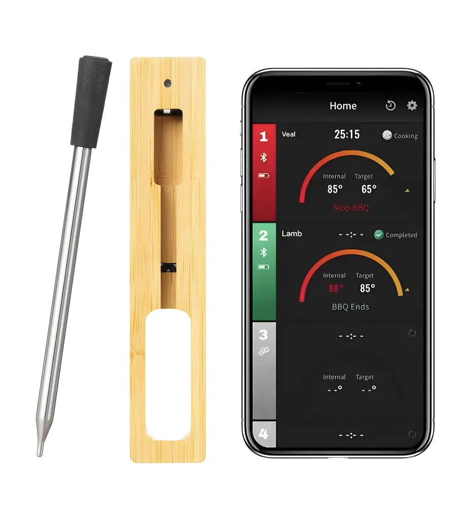 You just need to insert the probe, select the cooking level on the app... and kick back. Qinux MeatMark takes care of the rest with professional-level precision and not a single wire in sight.