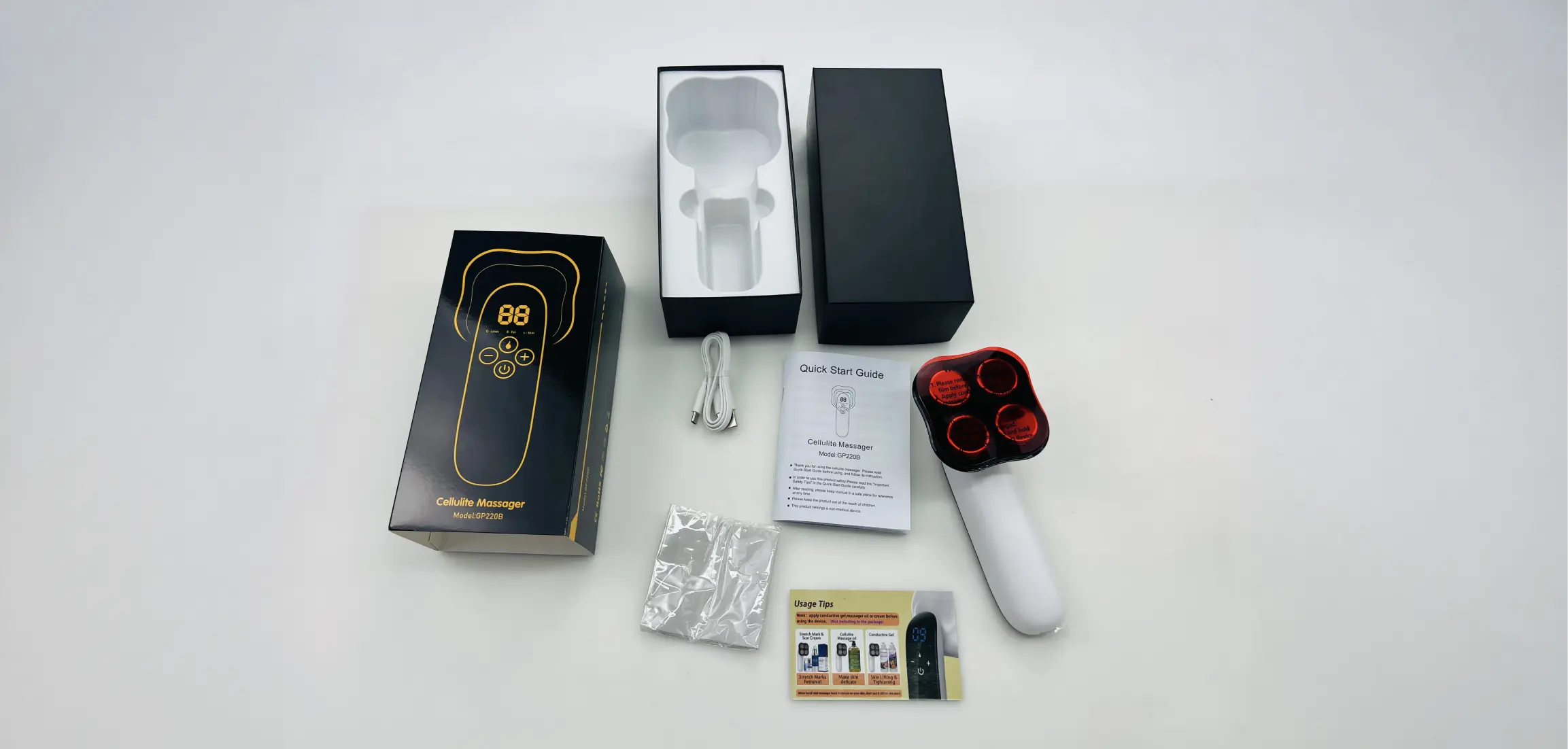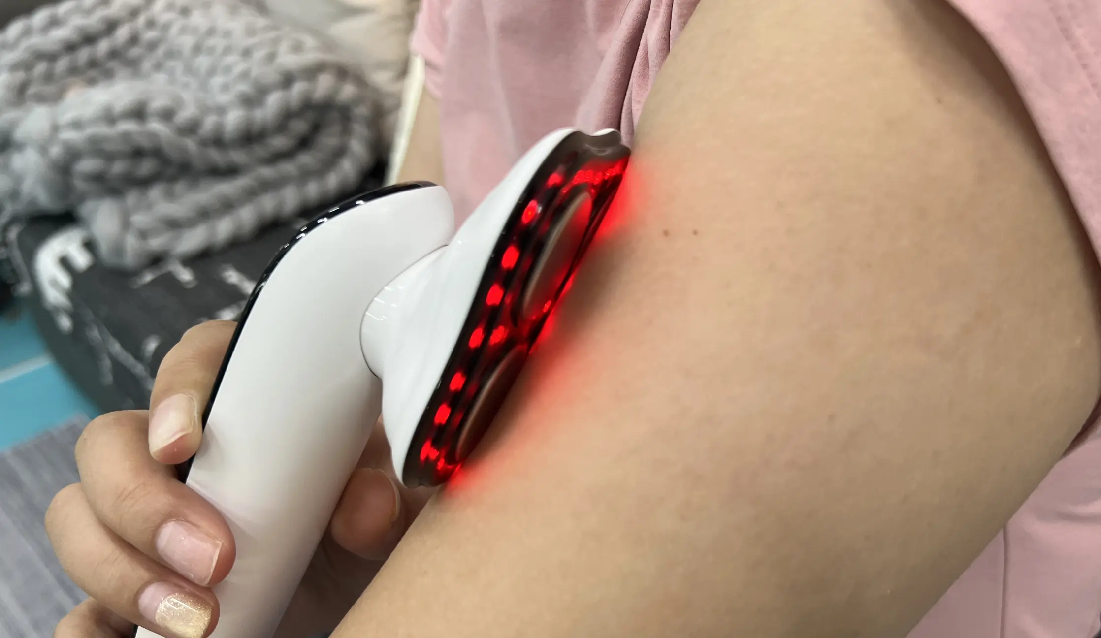With 40 LED lights, it stimulates cell regeneration, improves skin texture, and speeds up the reduction of cellulite and stretch marks.