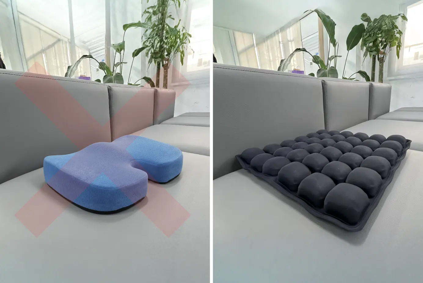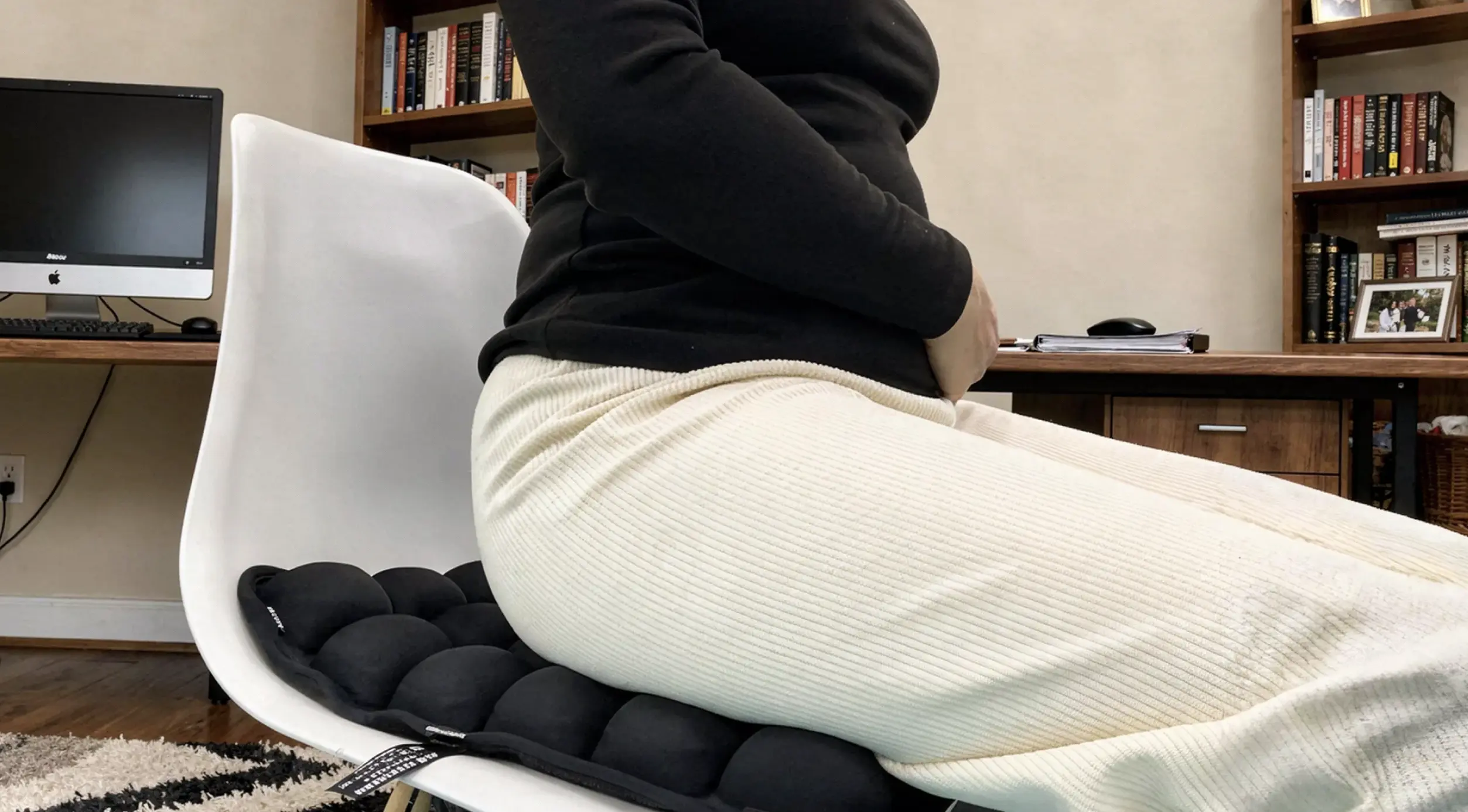 Keeps the tailbone protected, aligns the back, and relieves pressure while sitting.