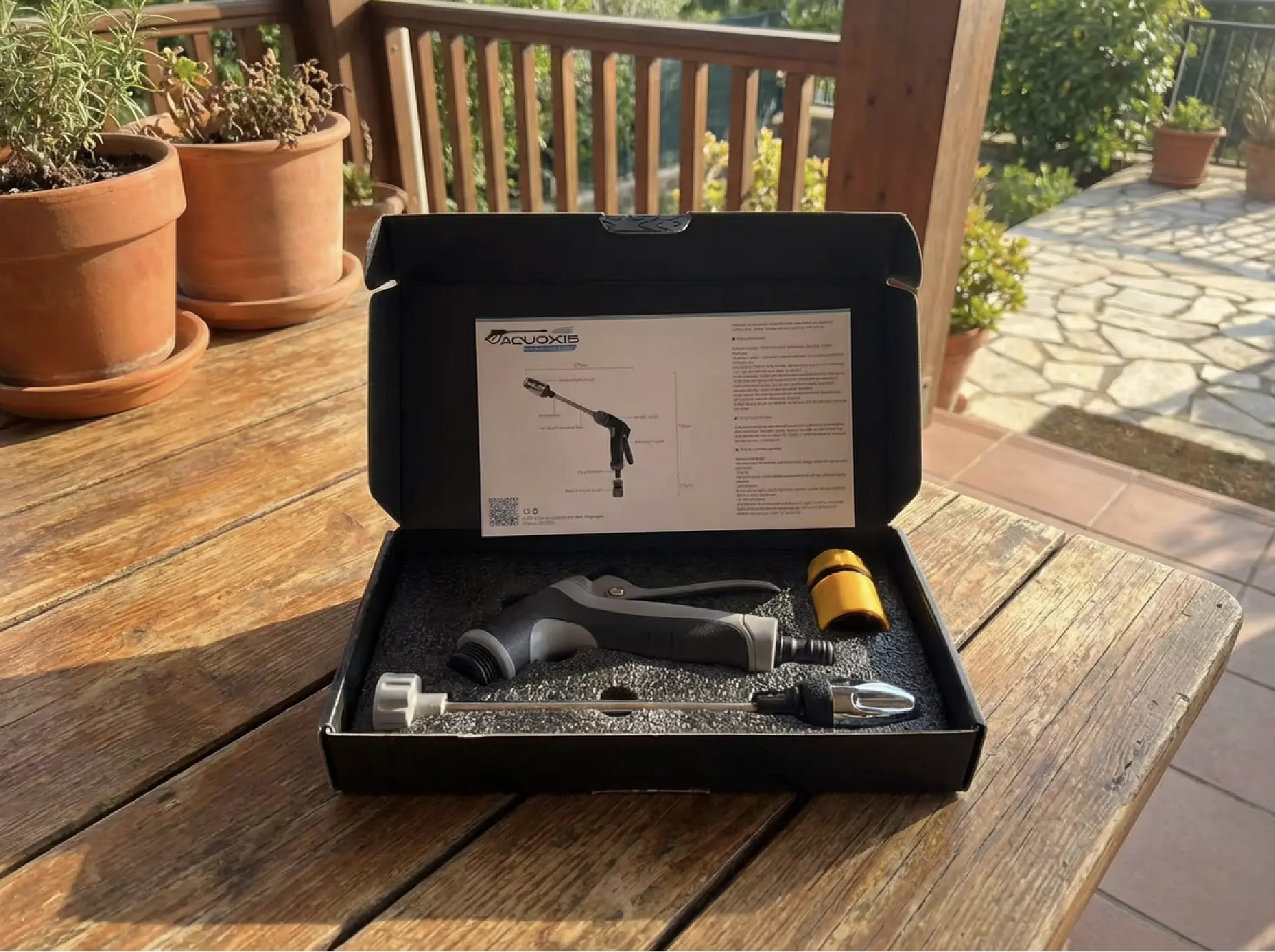 When I got the Qinux Aquoxis high-pressure washer, I had no idea how much easier it would make things at home. For years, I had been suffering from back pain from bending over to clean the car, scrub the patio, and especially the garden chairs and tables, which were always covered in dust and grime.
