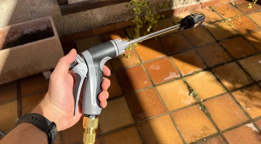 The Qinux Aquoxis has been my go-to ever since I tried it. The best part is I can adjust the spray just how I want: gentle for watering plants and strong for blasting dirt off the car and patio. No hassle with adapters or weird connections; I just hook up the usual hose and I'm good to go.